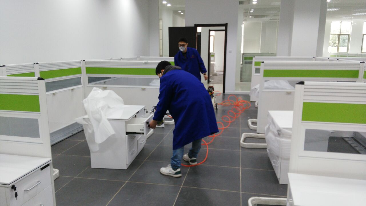 根據(jù)實地考察該單位裝修特點(diǎn),結(jié)合先前檢測的數(shù)據(jù)報告,我們?yōu)槠渥隽嗽敿?xì)的施工治理方案,并報其公司領(lǐng)導(dǎo)審核,經(jīng)刪選同意并認(rèn)可我公司的施工治理方案。經(jīng)過施工治理——復(fù)檢修補(bǔ)——驗收審核等工序,該工程于近日全部完工。下圖為工程施工現(xiàn)場: