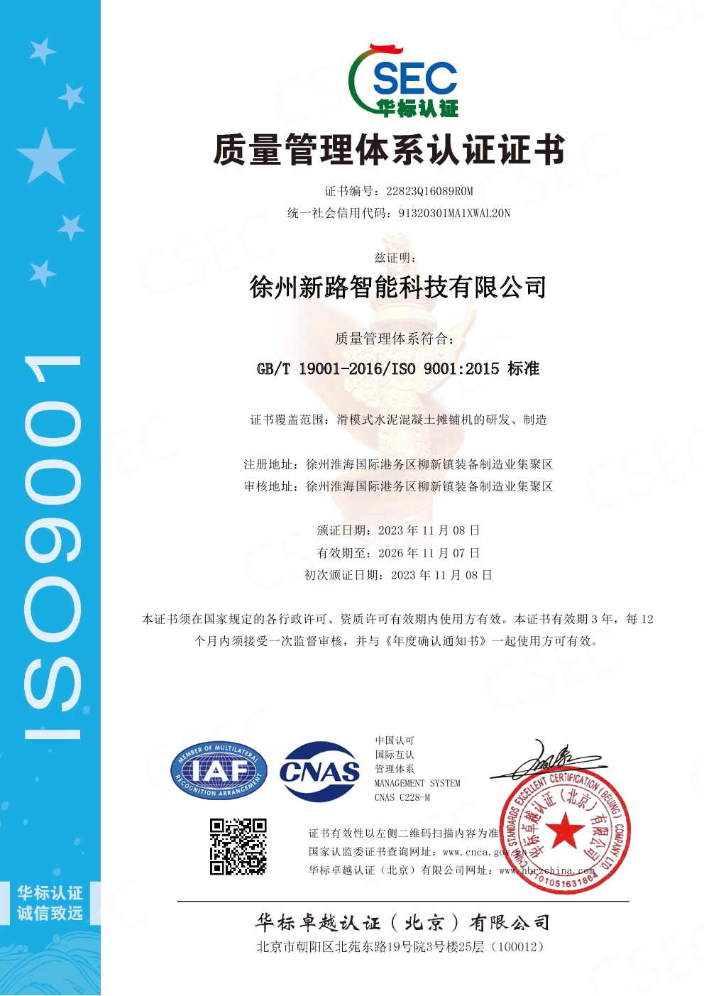質量管理體系認證證書